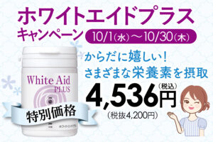 【10月お届け・予約受付中|ホワイトエイドプラス キャンペーン〈~9/19まで〉】 適切な栄養補給で明るい日々をサポートする【ホワイトエイドプラス】が特別価格に! さらに、3箱ご購入で1箱プレゼント!