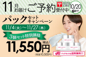 【11月お届け・予約受付中|パックセットキャンペーン〈~10/20まで〉】 乾燥の季節に欠かせないパックがお得なセットに! セットをご購入でバラの香りの美容オイルプレゼント!